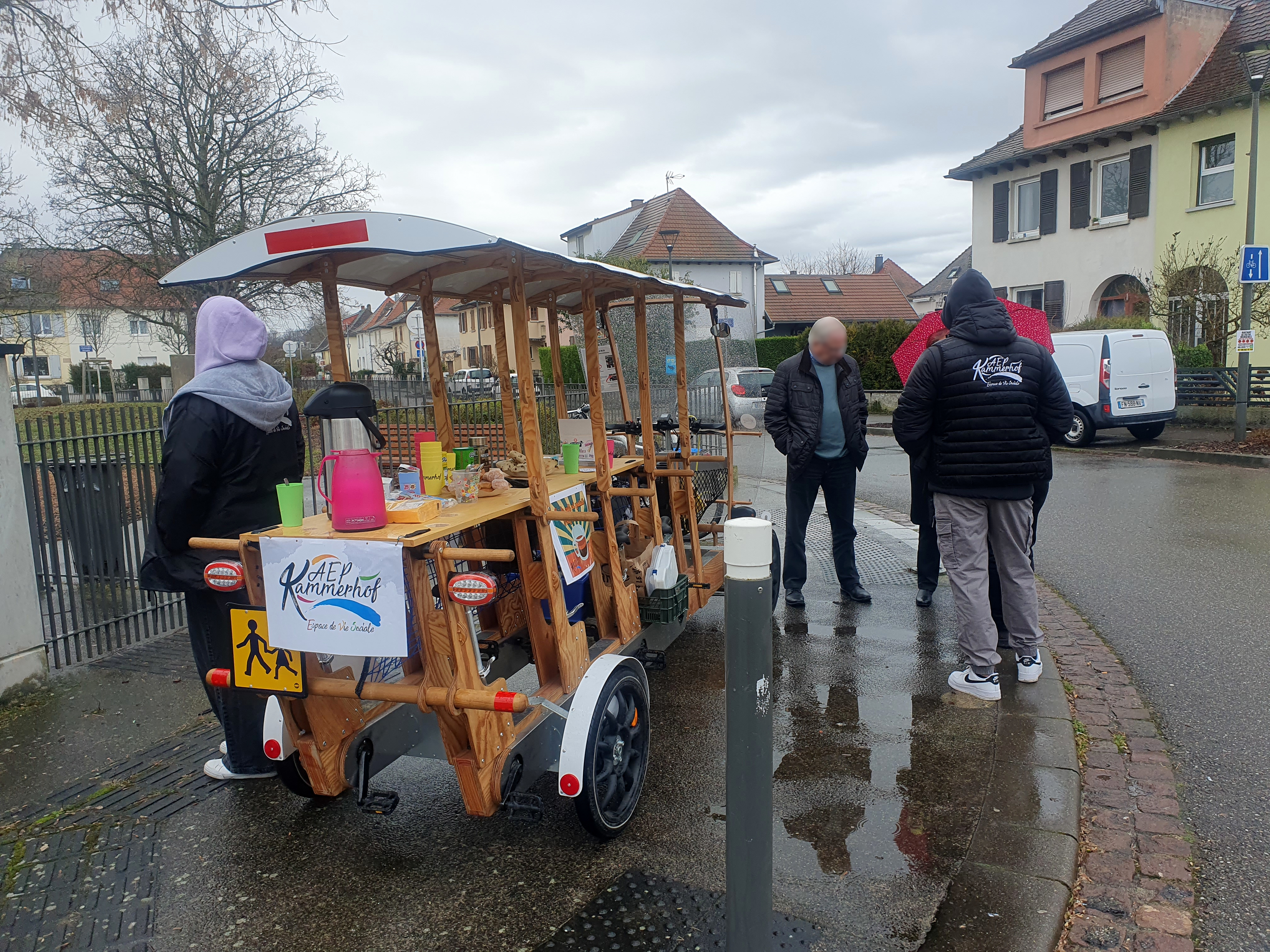 En 2024 la ville de Strasbourg dote l'AEP de deux vélobus, ou woodybus (parce qu'ils sont majoritairement en bois), afin de pouvoir assurer un service périscolaire pour les enfants de l'école du Stockfeld, en plus de ceux de l'école Alice Mosnier. Le bus est un "vélo à assistance électrique à 9 places", 8 petits sièges pour les enfants, et une place adulte pour le conducteur pilote. Chacun pédale pour faire avancer le bus, et la batterie aide l'ensemble à avancer. Le bus permet d'emmener les enfants depuis l'AEP jusqu'à l'école du Stockfeld en quelques minutes tous les matins (et inversement le soir pour ceux qui sont inscrits au périscolaire du soir). Un woody bus a aussi été aménagé en "woody café", il circule une fois par semaine dans le quartier du stockfeld afin de créer du lien social majoritairement avec les aînés.
